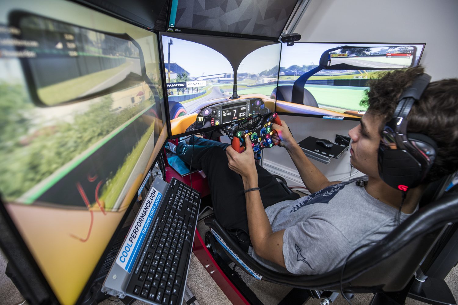 Norris zoals we hem vaak zien deze weken: zittend. Foto Motorsport Images