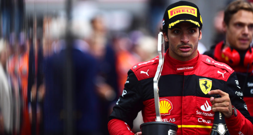 Sainz was de Grand Prix als tweede gestart, achter Charles Leclerc. De uitgestelde start op een nat circuit zorgde voor een onvoorspelbare race, maar Sainz had al vroeg een plan in zijn hoofd. Gestart – net als de rest van het veld – op de blauwe regenbanden liet de Spanjaard aan zijn team weten dat hij bij het opdrogen van de baan niet wilde overstappen op de intermediates, maar direct wilde wisselen naar slicks. Die gok pakte verkeerd uit: Sainz ging na zijn stop weliswaar voorbij aan teamgenoot Leclerc, maar bleef in zijn outlap lang vastzitten achter een achterblijver en dat gaf Pérez de gelegenheid de Spanjaard voor te blijven en uiteindelijk de race te winnen.