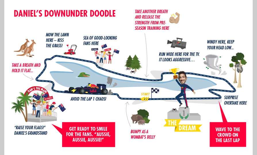 Voor Verstappens teamgenoot Daniel Ricciardo is de Grote Prijs van Australië niet alleen bijzonder omdat dit de eerste van het jaar is, maar ook omdat het zijn thuisrace is. Awesome, natuurlijk, maar: “Het betekent ook dat het een super drukke week is, waarin ik elke dag vol gas moet gaan.”